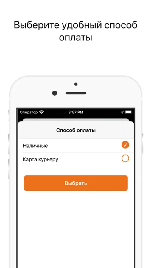 Выберите способ оплаты: Наличными, Банковской картой или Картой курьеру. Примите правила оплаты и нажмите кнопку “Заказать”.