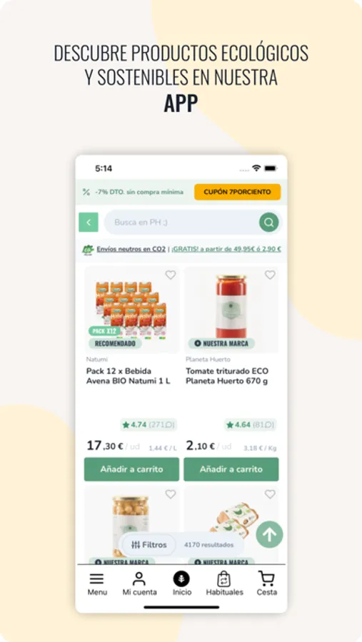 La app de Planeta Huerto acerca a tu móvil el catálogo de miles productos disponible en nuestra web. Te ofrecemos un amplio abanico de productos de las mejores marcas, que busca cubrir todos los aspectos de un estilo de vida saludable y sostenible: