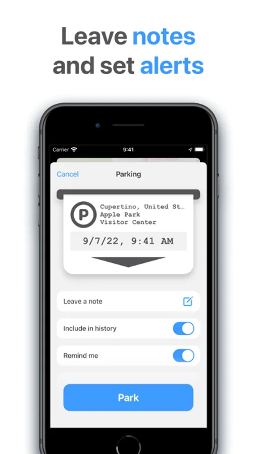 You can leave notes to describe the location, the level and the lot number in a parking garage, or anything that will help you locating your car.