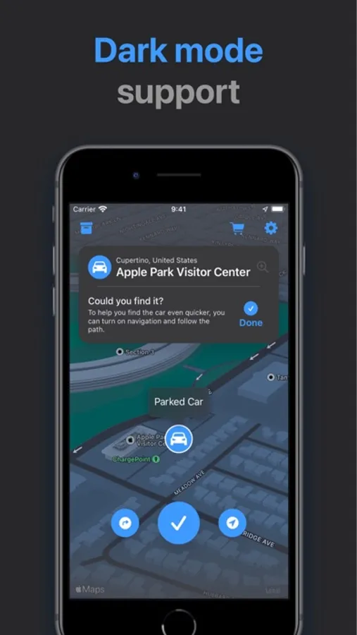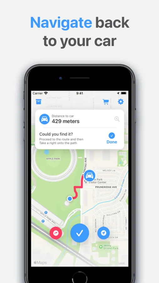 Find My Car lets you park your car when you are traveling or just driving around. It saves the location, and can navigate you back to your car wherever you are.
