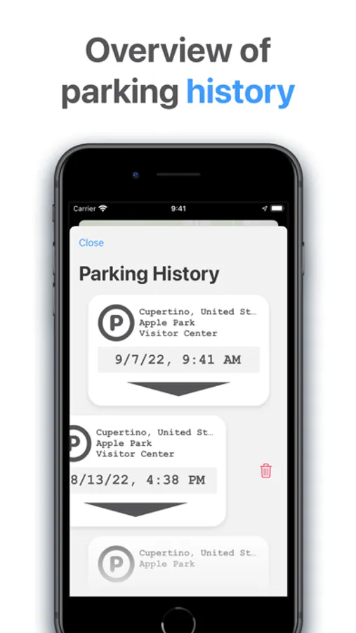 If there is a time limit for the parking, it is possible to activate a notification which will remind you about your car. This will help you to avoid getting fined!