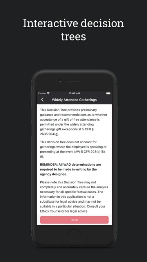 This app requires no authentication or authorization. Please note that the information in this app is not a substitute for legal advice and may not reflect the most current legal and/or policy developments. Users are advised to consult their Ethics Counselor regarding specific legal questions.