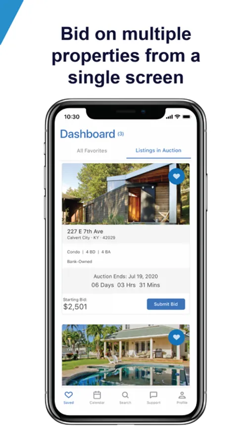 • Save your favorite homes and bid on them directly from your mobile dashboard