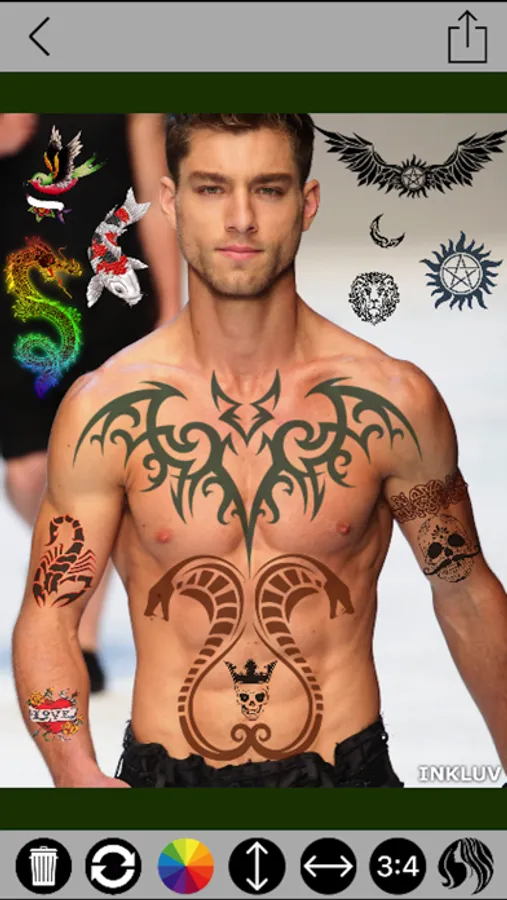 InkLuv is an application providing nice tattoos for everyone, with a simple interface and easy to use, it will create wonderful tattoos photo with high definition image.