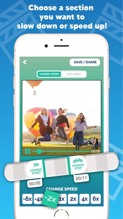- Mark the beginning and the end of a part you want to slow down or speed up.