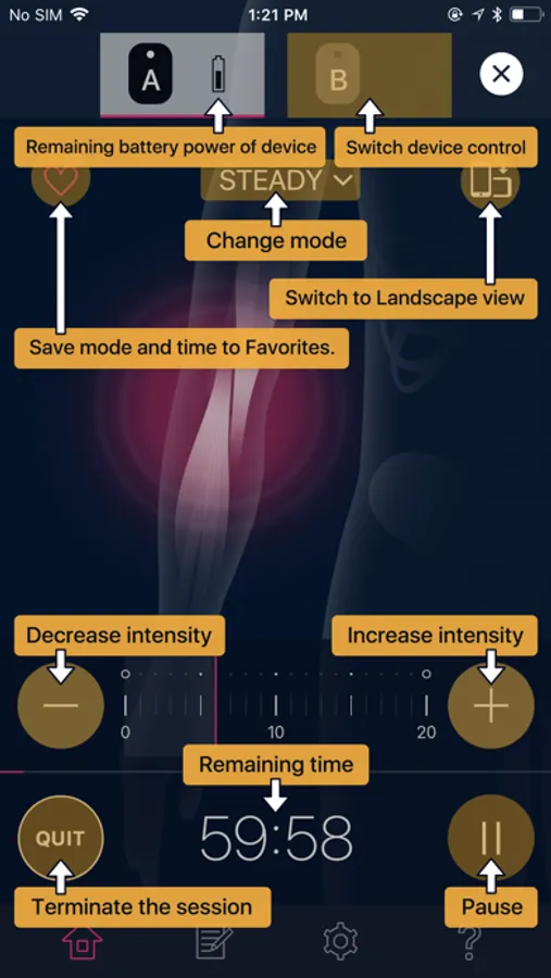 Omron TENS app allows you to control the Avail Dual Channel Wireless TENS devices.
