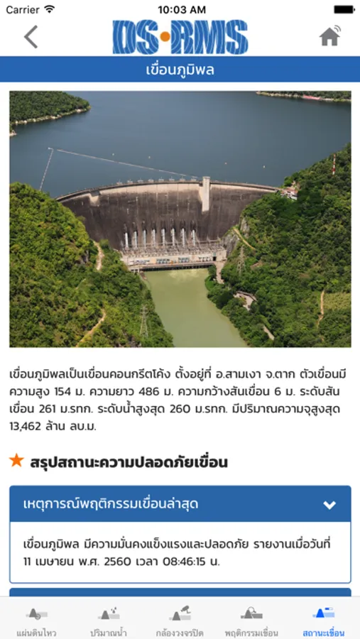 ระบบตรวจสุขภาพเขื่อนถูกพัฒนาขึ้นเพื่อให้ประชาชนสามารถเข้าดูสถานะความปลอดภัยเขื่อนใหญ่ของ กฟผ. ทั้ง 14 เขื่อน ได้ตลอดเวลา พร้อมทั้งสามารถเข้าดูข้อมูลเหตุการณ์แผ่นดินไหว ข้อมูลสถานการณ์น้ำ และกล้อง CCTV อันจะเป็นการสร้างความเชื่อมั่นต่อประชาชนภายนอกว่าเขื่อนต่าง ๆ ที่อยู่ภายใต้การดูแลของ กฟผ. มีความมั่นคงแข็งแรง และมีการตรวจสอบความแข็งแรงของเขื่อนเป็นประจำ พร้อมทั้งมีระบบแจ้งเตือนในกรณีที่เกิดเหตุผิดปกติกับเขื่อนต่าง ๆ