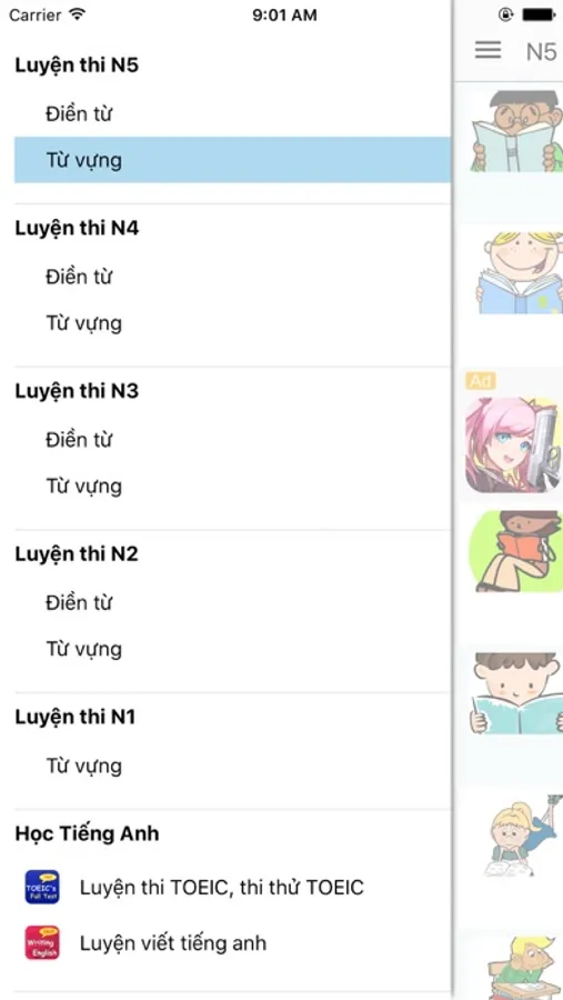 "Từ Vựng Tiếng Nhật - Offline" hỗ trợ học từ vựng tiếng Nhật cấp độ n1, n2, n3, n4, n5.
