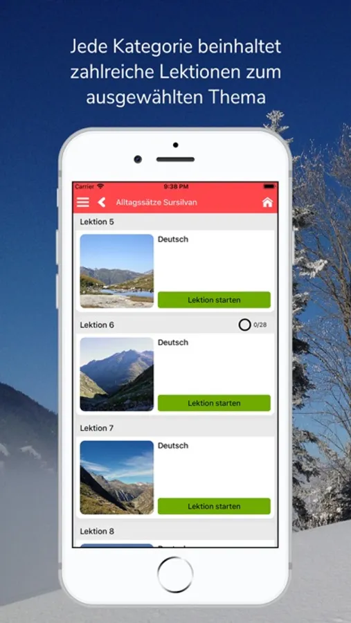 • Zahlreiche Lektionen zum Erlernen der Sätze mit über 1'500 Lernkarten