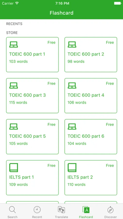 • Flashcard games with selected important words for TOEIC,IELTS, etc.