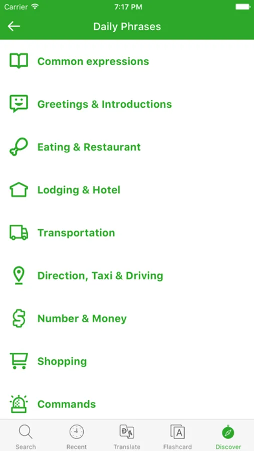 • Thousands of carefully built and designed phrases and meanings for daily conversation.