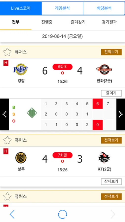 - 경기일정, 역대전적과 함께 라이브 스코어를 손쉽게 확인 할 수 있습니다.