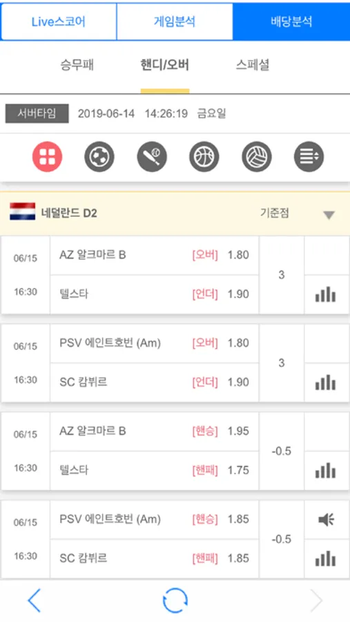 - 해외배당흐름 을 실시간으로 확인 할 수 있으며 경기결과와 함께 경기 의 분석까지!