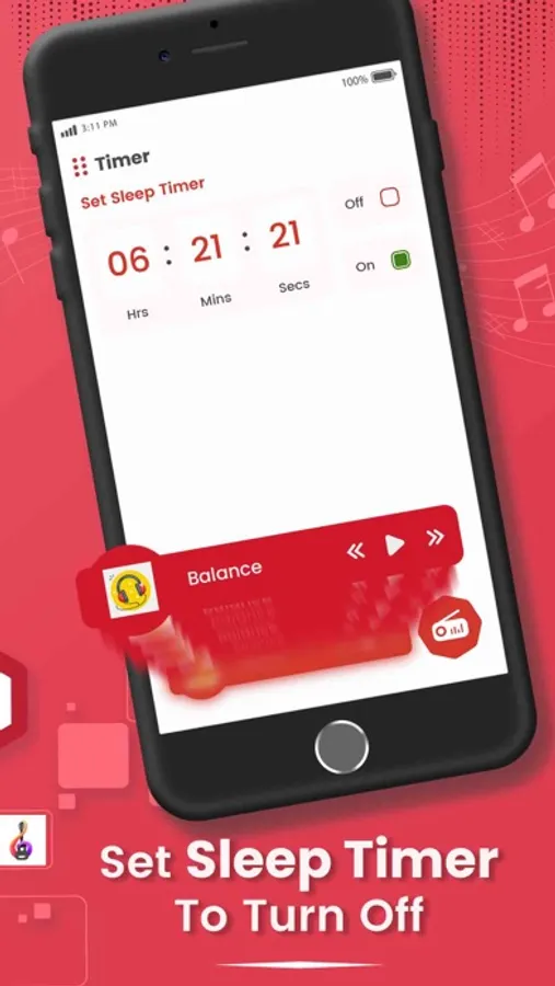 - Provides sleep timer option to turn off the playing at the given time.