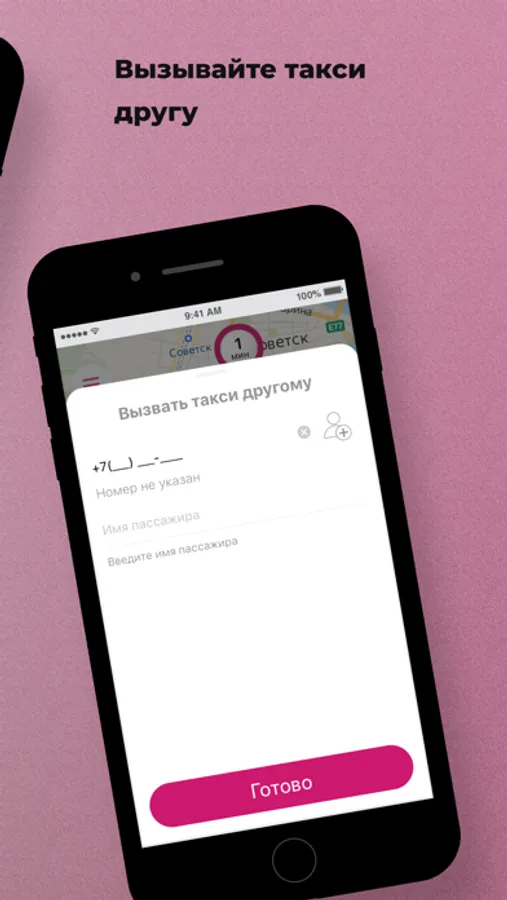 Используйте опцию “Вызвать такси другому” в разделе “Пожелания” и укажите его номер телефона. Когда такси подъедет, на указанный номер придет СМС, а вам — сообщение в приложении.