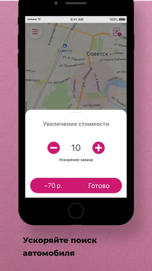 Заказывайте Такси Балтика в городах Советск и Гусев через приложение. Это в 3 раза быстрее, чем по телефону! Между желанием доехать до нужного места и поиском автомобиля — пара секунд.