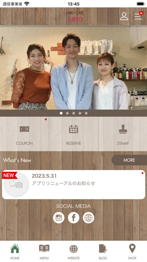 アプリを通して 「Hair×Cafe Lieto」の新着情報やお得な情報をリアルタイムで受け取ることができます。