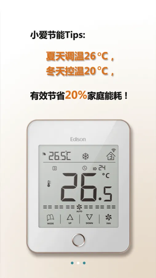 “小爱控温”是珠海爱迪生智能家居股份有限公司基于其智能温控器TX937系列产品而开发的一款远程监测、遥控APP,“小爱控温”可以实时采集查阅用户使用环境的温度,并可通过无线网络实现手机端对空调和采暖设备的开关、模式、风力等内容进行控制,为用户带来一键遥控,回家即享的舒适体验。该APP需配合爱迪生智能家居设备使用。