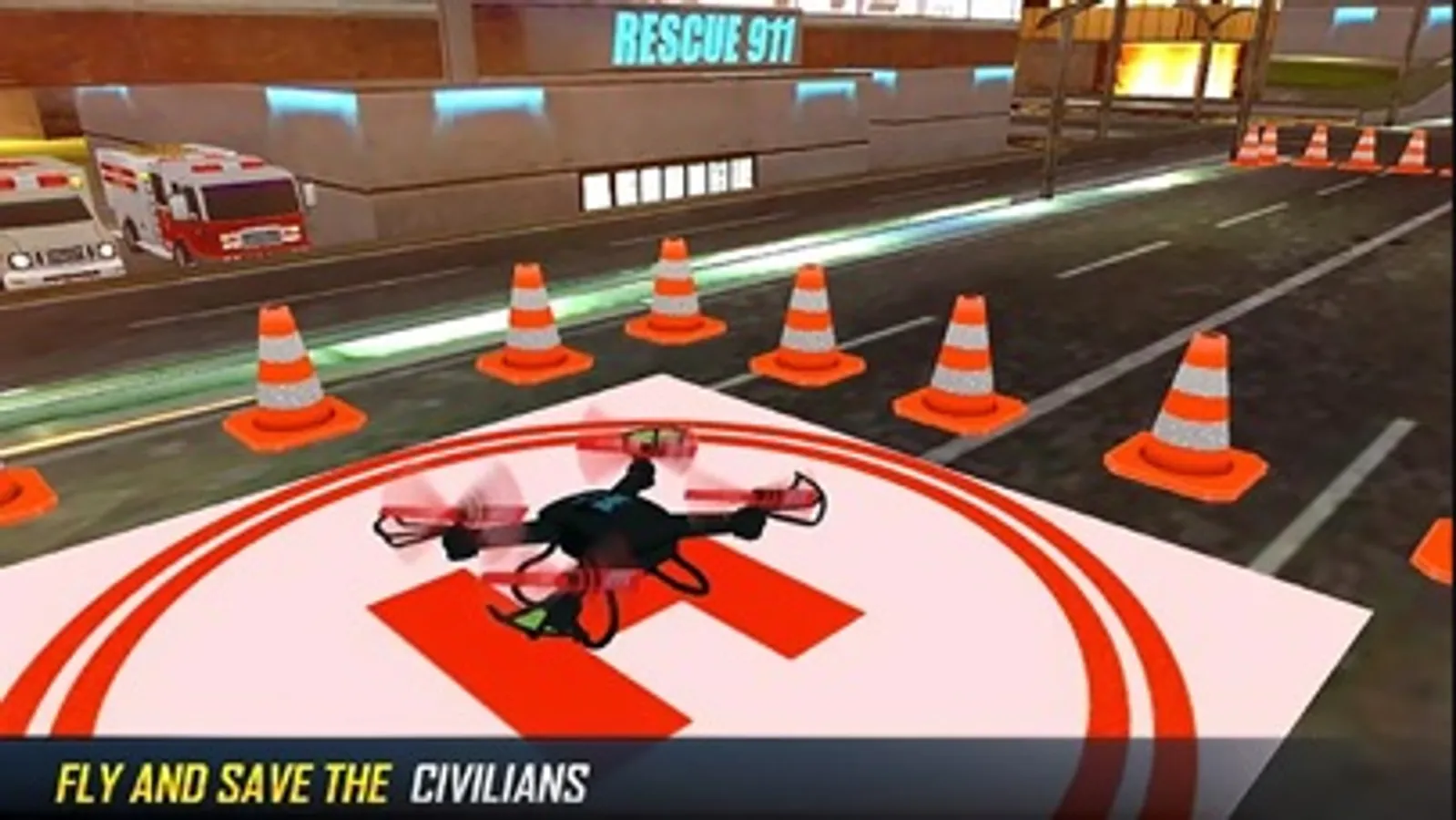 This is your chance to become an amazing fire fighter, save the lives and historic city landmarks from a deadly fire that is dangerously out of control through the futuristic drone. You have got your chance because amazing firefighter drone will give you the opportunity of flying a drone simulator through different parts of the city and rescue people. Now Innocent lives are in your hands. Real futuristic drone firefighter is about flying skills over the city like a flying hawk, and then rescuing innocent people with your fire brigade vehicle. Firefighter trucks, vans and other rescue vehicles or fire-fighters can't help in the huge skyscraper buildings in a huge metropolitan city.