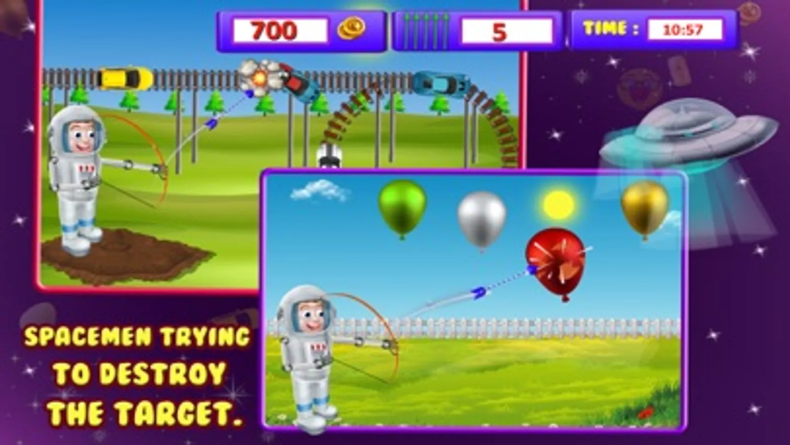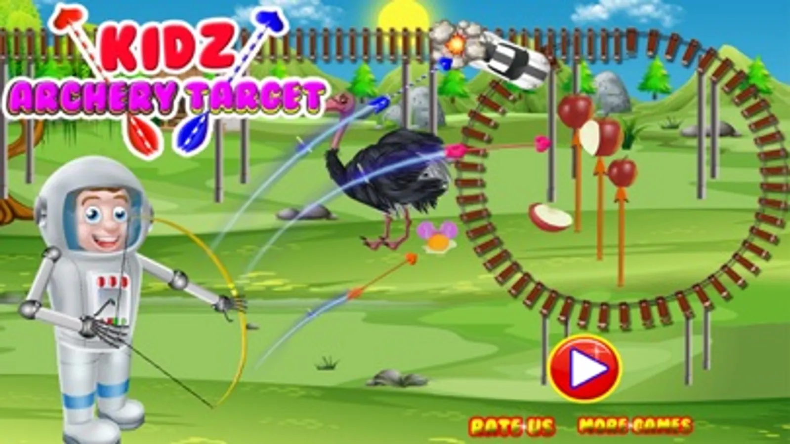 Kids Archery Target is especially design for the kids who are interesting to play the shooting games. There are different target to shoot like bird eggs, running cars, bottle, cans, bubbles, balloon, and apple by using arrows.