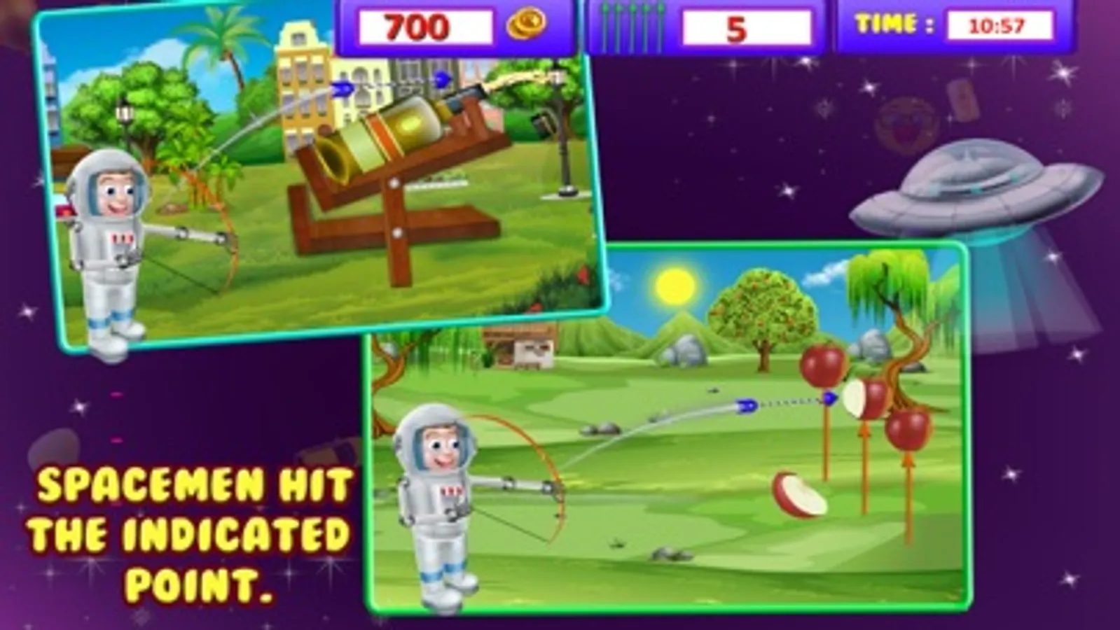 • Thrilling arrow shooting game and hitting game