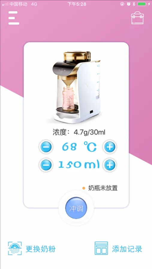 冲奶机升级版, 可以一键配置冲奶机, 实现冲奶功能; 可以设置水量和温度, 实现精确冲奶;