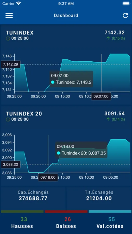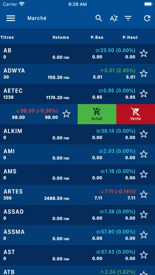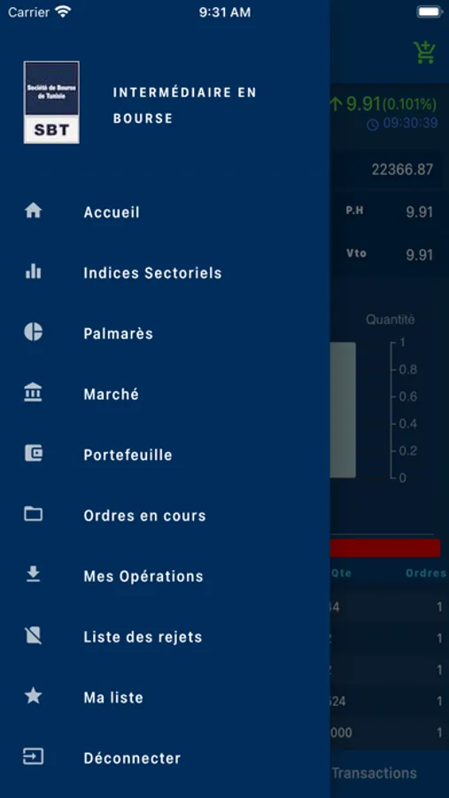 - de suivre les cotations des indices et valeurs du marché de la bourse de Tunis.