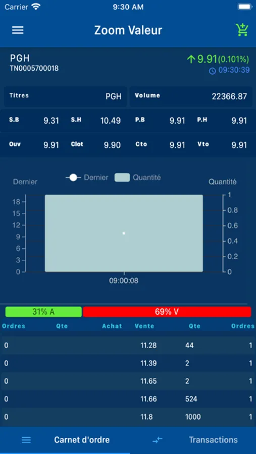 - de visualiser le carnet d`ordres