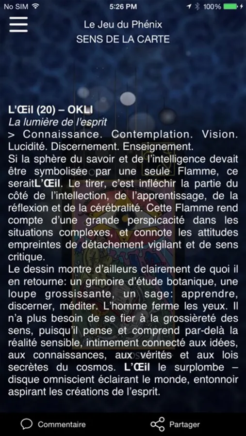 Vous avez en main la version numérique du premier tarot philosophique au monde : le Jeu du Phénix, créé par le philosophe Vincent Cespedes.
