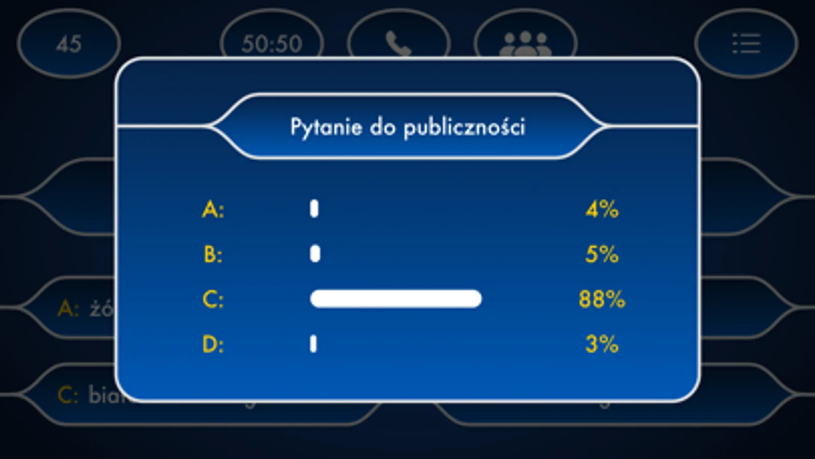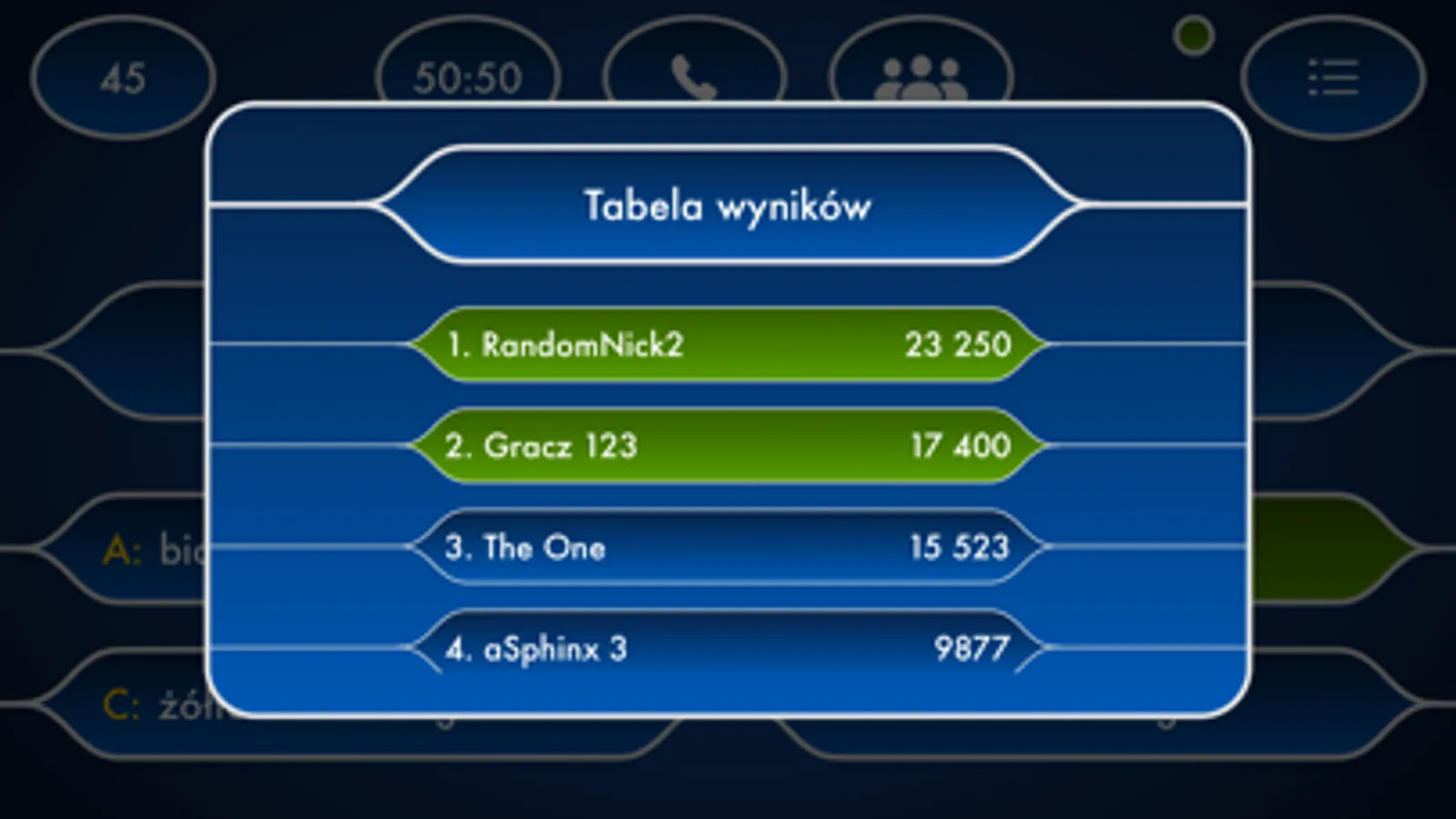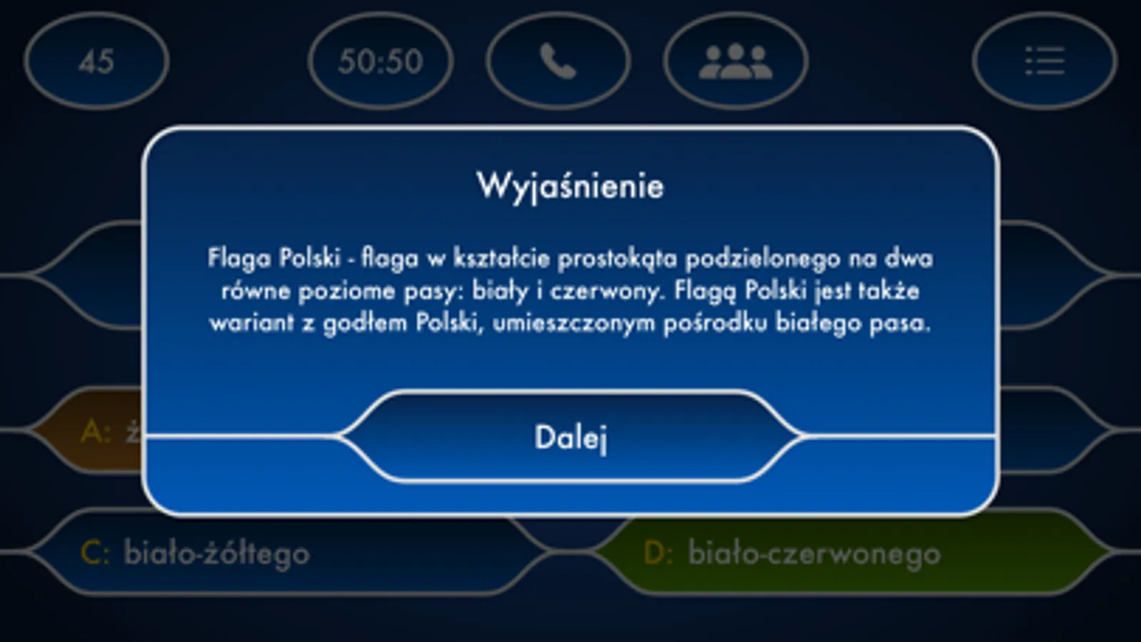 * Telefon do przyjaciela - poproś o pomoc jednego z 21 ekspertów, którzy specjalizują się w różnych dziedzinach.