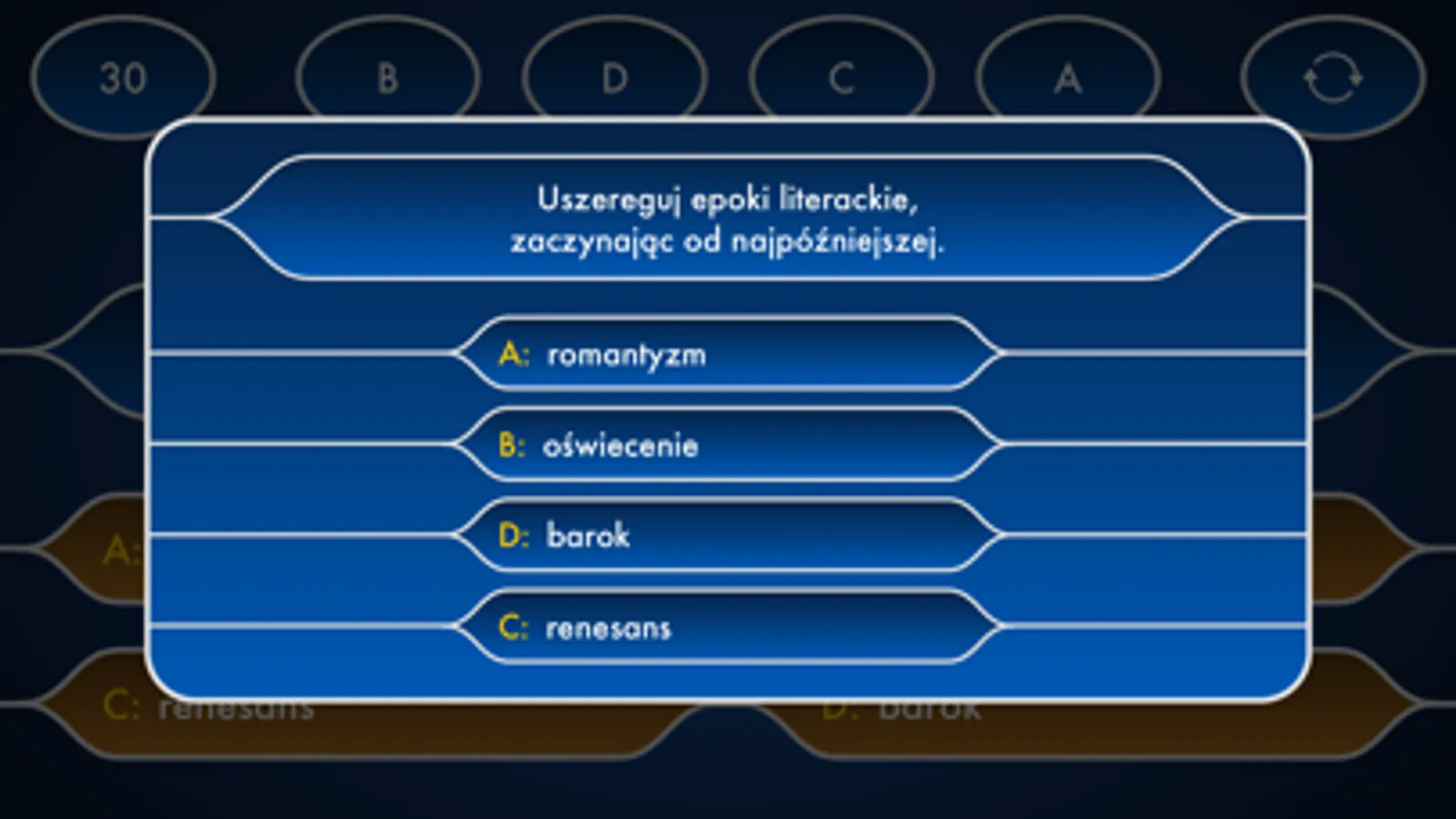 * Wyzwanie weekendowe - masz pół minuty i tylko jedno podejście na ułożenie czterech odpowiedzi w prawidłowej kolejności.