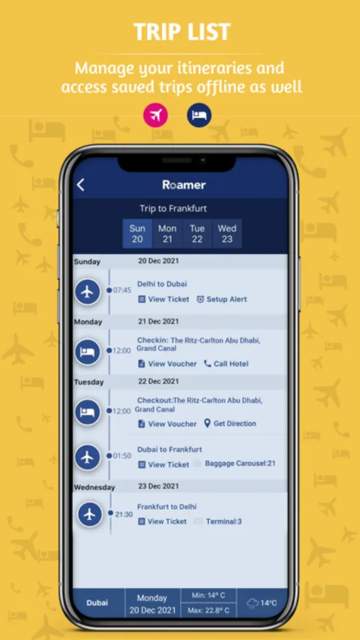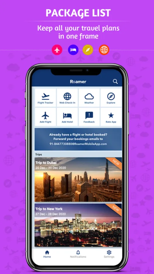 Roamer will notify information related to the trip and updates you with any Flight delays, cancellations etc. This helps you to plan better well in advance.