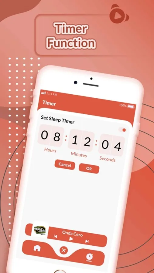 - Provides sleep timer option to turn off the radio playing at the given time.