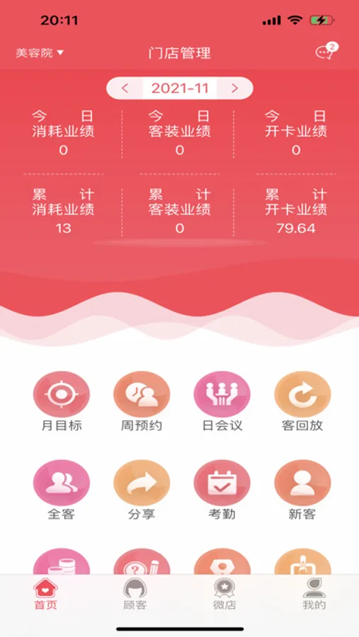 包含管理收入,预约,会议,客回访,全客,分享,考勤,新客等几大模块,帮助美容院更好的服务号顾客和管理好各项任务。
