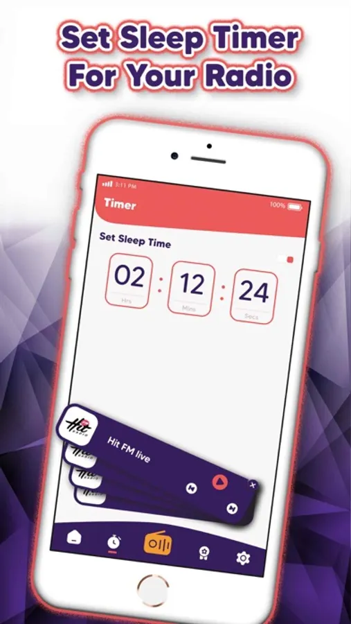 - Provides sleep timer option to turn off the radio playing at the given time.