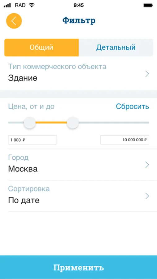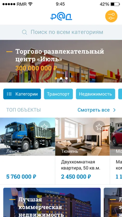 В мобильном приложении РАД представлена большая база различного имущества, в том числе квартиры, офисы, коммерческая недвижимость, все виды транспорта, спецтехника, права требования и многое другое.