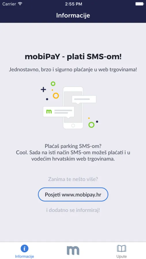 mobiPaY je usluga koja omogućava plaćanje SMS-om u vodećim hrvatskim web trgovinama. Plaćanje proizvoda online je od sad kao da plaćaš parking... Aplikacija Vam služi za jednostavnije i brže plaćanje mobiPaY uslugom skeniranjem QR koda.