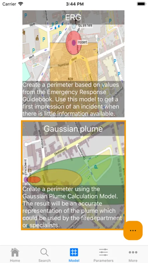 The Visual accident Perimeter helps emergency responders to quickly evaluate dangerous situations. VAP will create a dispersion model based on your input on the Map.