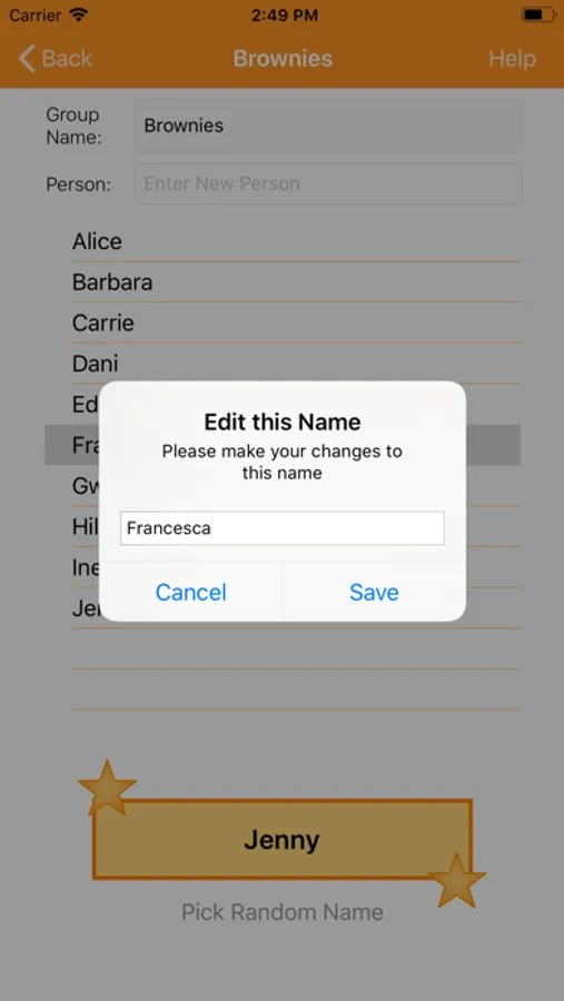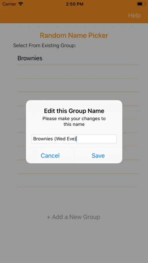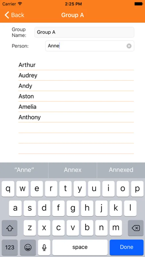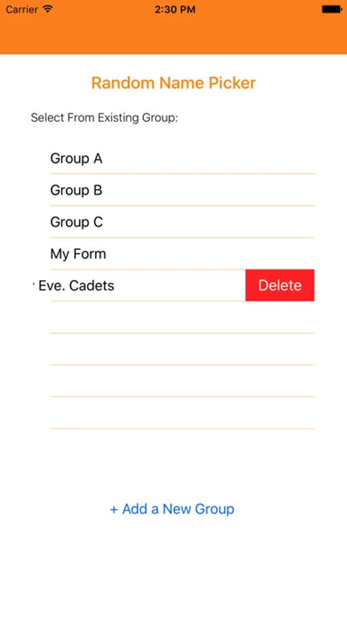 Simply give your group a title and add names to it, press the 'Pick a Random Name' button, and the App displays a random person from your group.