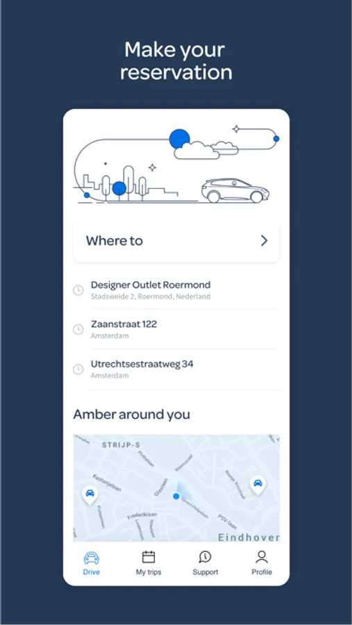 - Place your reservation in the app and drive away!