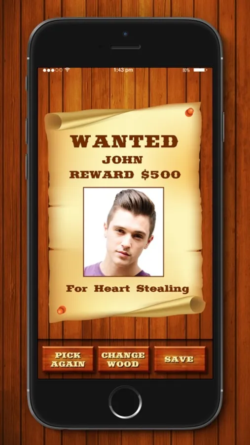 Simple and fun, only select a photo from gallery or capture a snapshot with your phone or ipad, and select the frame you like best to create a western or modern style wanted poster.