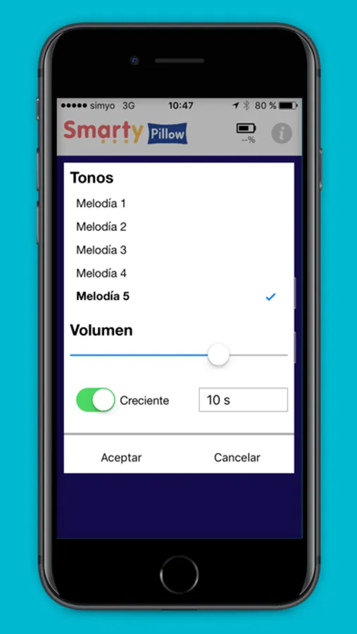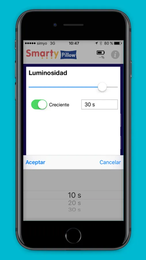Aplicación que funciona con la almohada inteligente modelo Smarty de la empresa ECUS. Esta app conectada con la almohada aporta luz y sonido a la habitación. Con SmartyPillow el usuario puede despertarse con agradables sonidos y con luz ambiente, la app permite modificar diferentes opciones para despertarse progresivamente.
