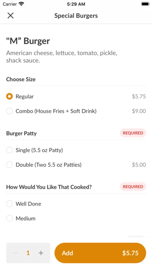 With the M Shack mobile app, ordering food has never been easier. Whether you're looking for a quick snack or a full meal, we've got you covered. Just browse our easy-to-use menu, customize it how you'd like, place your order using our secure payment system, and sit back! A push notification will alert you when your order will be ready.
