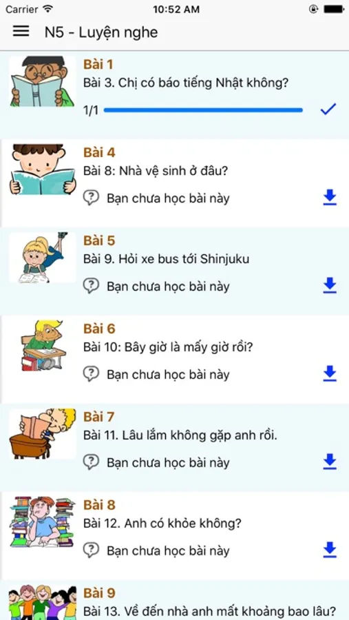 "Luyện Nghe Tiếng Nhật - Offline" Có nhiều bài tập để bạn có thể luyện tập thỏa thích
