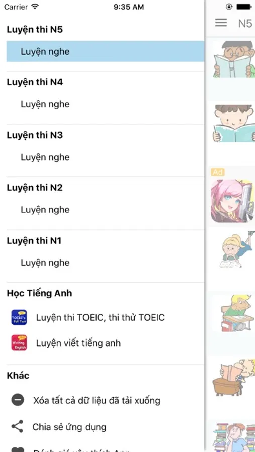 "Luyện Nghe Tiếng Nhật - Offline" hỗ trợ kỹ năng nghe tiếng Nhật cấp độ n1, n2, n3, n4, n5.
