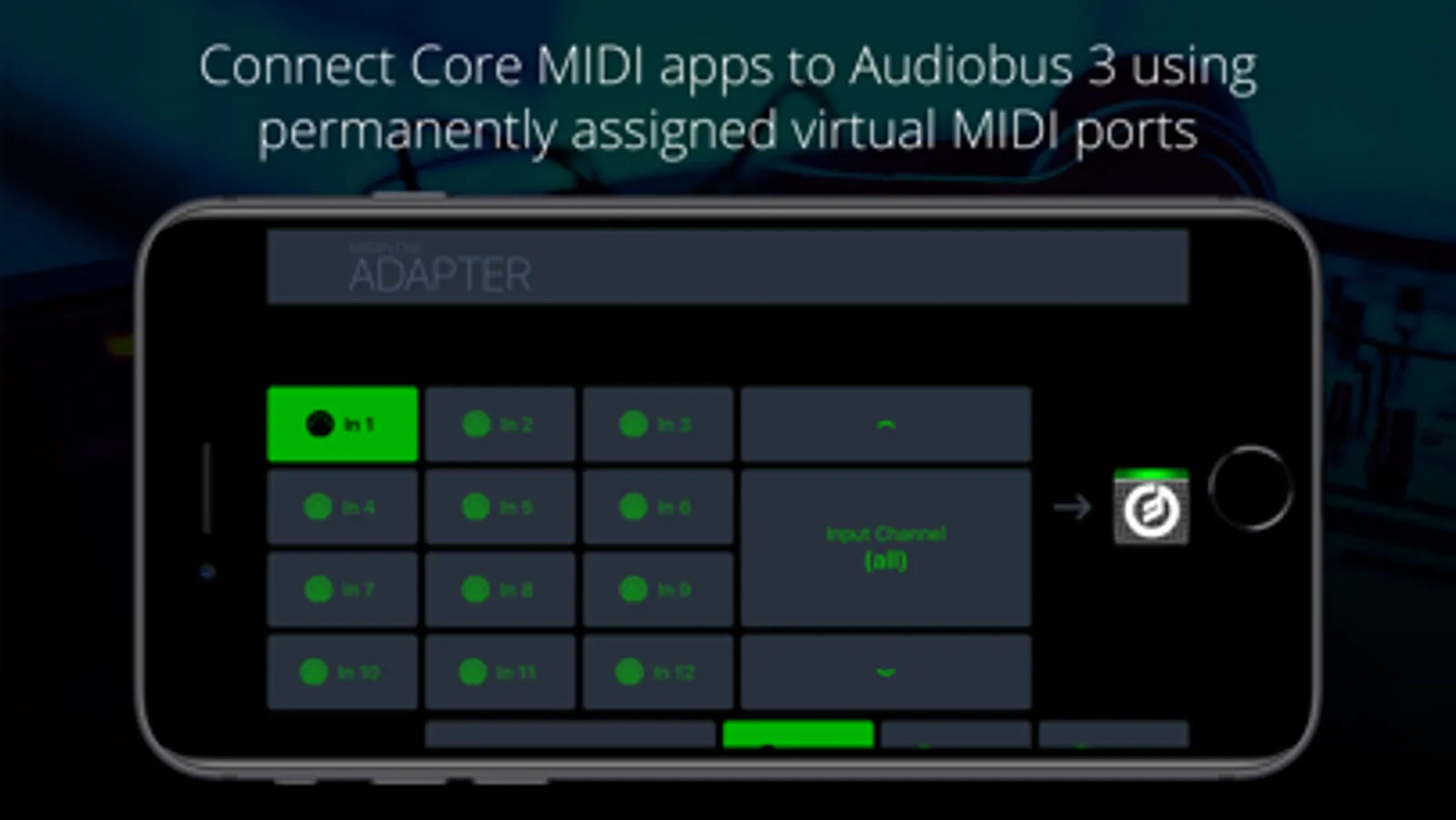 NOTE: This app requires Audiobus 3. Insert it into one or more MIDI input and output ports. Furthermore, this adapter only works with apps that allow you to select MIDI ports for sending and receiving. It won't work with apps that have no MIDI setup page.