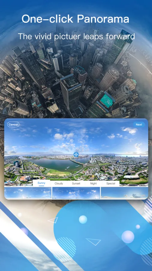 1. Take a 720° panorama photo with one click, add more materials, and the panorama effect is stunning.
