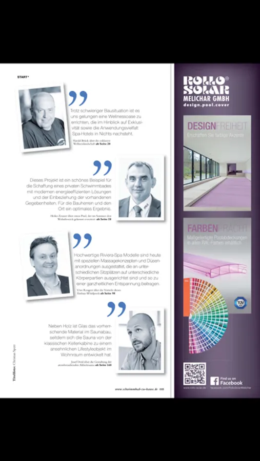 haus und wellness* macht App-etit auf Wellness! Lesen Sie Deutschlands meistgelesenes Magazin für Pool, Whirlpool und Sauna - im Original-Look der Printausgabe. Starten Sie jetzt mit dem Download der kostenlosen App und tauchen Sie ein in die wohltuende Welt der Wellness. haus und wellness* bringt den Wellness-Trend nach Hause - und zu Ihnen aufs iPad. Als aktiver Kaufberater zeigt es die besten Anregungen und Inspirationen für ein Schwimmbad, einen Whirlpool, eine Sauna oder ein Dampfbad in den eigenen vier Wänden. In ausführlichen Reportagen im 3D-Look, werden gelungene Wellness-Oasen vorgestellt und in detaillierten Beschreibungen wird klar, worauf es bei Einbau und Wartung moderner Anlagen ankommt. Die neuesten Trends werden von unserer Redaktion aufgegriffen und in einem ansprechenden Layout präsentiert. Aber auch Tipps und Ratschläge von ausgewiesenen Experten etwa zu den Themen Wasserpflege, Betriebskosten und Steueranlagen stellen einen Schwerpunkt in haus und wellness* dar. haus und wellness* ist die App für entspannte Hausbesitzer - in völlig neuem Look and Feel. Mit dieser App gehen Sie bestimmt nicht baden. Schicken Sie uns Ihr Feedback an app@hausundwellness.de. Ihre haus und wellness*-Redaktion