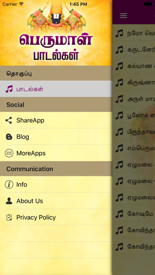 Lord Vishnu is supposed to be a great lover of music and these songs are composed with utmost devotion to please the Almighty. A very useful collection of Shriman Narayanan devotional songs and everyday prayers.An excellent audio streaming of a very rare collection of Perumal devotional songs.