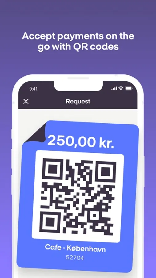 - Enables you to request money from customers via QR code or Bluetooth